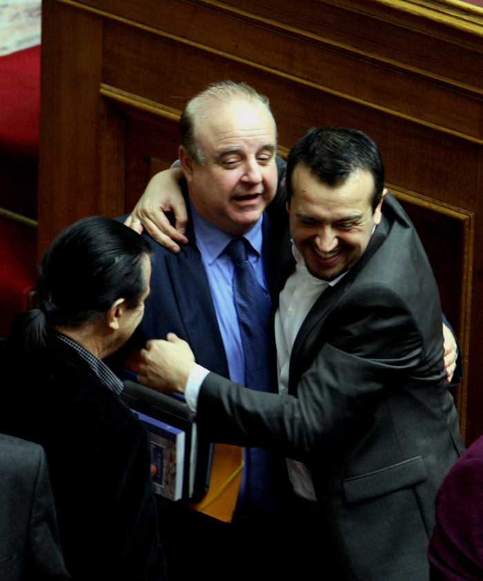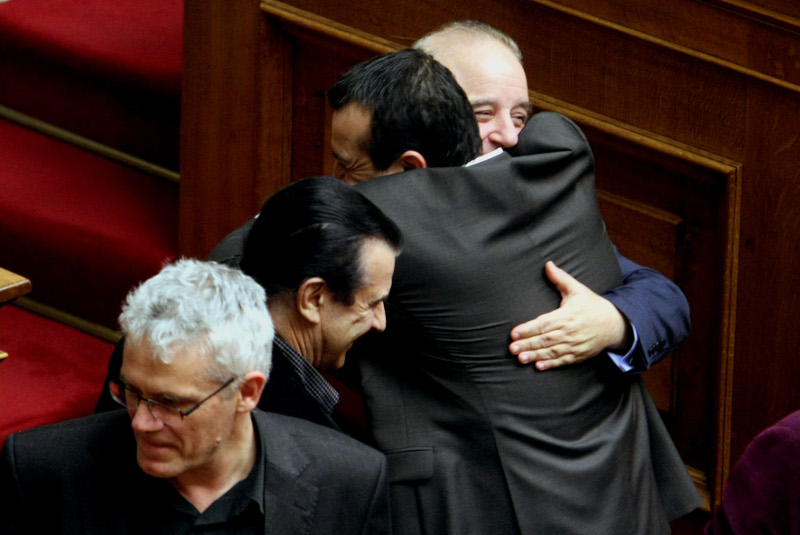 Ακόμη πιο εκδηλωτικός από την πλευρά του ΣΥΡΙΖΑ, πάντως, φάνηκε να είναι ο υπουργός Επικρατείας Νίκος Παππάς, ο οποίος μετά το τέλος της ψηφοφορίας είχε θερμές αγκαλιές με πολλά στελέχη των ΑΝΕΛ, όπως τον Πάνο Καμμένο, τον Παύλο Χαϊκάλη, την Ελενα Κουντουρά αλλά και την Σταυρούλα Ξουλίδου.