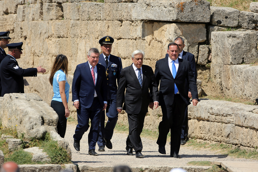 Ο πρόεδρος της ΔΟΕ Τόμας Μπαχ υπέγραψε την Διακήρυξη της Ολυμπιακής Εκεχειρίας στην τελετή που έγινε στον Ναό της Ήρας στην Αρχαία Ολυμπία.