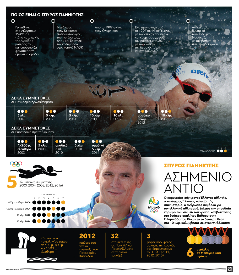 Κι επειδή... δεν ήταν καλός μαθητής στο σχολείο!«Είχα μαθησιακές δυσκολίες. Τα πρώτα χρόνια πίεζα τον εαυτό μου, προσπαθούσα πραγματικά και με έπιανε το παράπονο που δεν μπορούσα να είμαι αυτός που ήθελα. Αργότερα, στο γυμνάσιο, έμαθα ότι είμαι δυσλεκτικός. Αυτή η δυσκολία με πείσμωσε. Ένιωσα ότι έπρεπε να πετύχω κάπου. Να αποδείξω στον εαυτό μου πως αφού δεν ήμουν καλός στο σχολείο, θα μπορούσα να είμαι καλός κάπου αλλού. Κάπως έτσι, ο αθλητισμός έγινε το δικό μου σχολείο. Όσα έμαθα και ό,τι έγινα τα χρωστάω στον αθλητισμό. Τα ταξίδια που έχω πάει, τις διαφορετικές κουλτούρες και τους πολιτισμούς που έχω δει από κοντά, τους ανθρώπους που έχω γνωρίσει, τους φίλους που έχω κάνει. Ο αθλητισμός μού έμαθε την πειθαρχία, τη συνέπεια. Αυτό που είμαι ως άνθρωπος».Το νερό ήταν το στοιχείο του. Από πολύ νωρίς. Πριν καν περπατήσει: «Η πρώτη μου επαφή με το νερό έγινε πριν μάθω ακόμη να περπατάω. Έτσι μου έχουν πει οι γονείς μου. Μπουσούλαγα στην παραλία, έμπαινα στο νερό και δεν ήθελα να βγω. Κάθε καλοκαίρι είχαν πρόβλημα. Η μάνα μου, ως πρώην αθλήτρια και κολυμβήτρια, με έσπρωξε στην κολύμβηση. Το πρώτο πράγμα που θυμάμαι από τις πισίνες είναι εκείνος ο αγώνας που κατάφερα για πρώτη φορά να «βγάλω» όλη τη διαδρομή χωρίς να πιάσω την άκρη της πισίνας. Πρέπει να ήμουν πέντε-έξι χρονών.