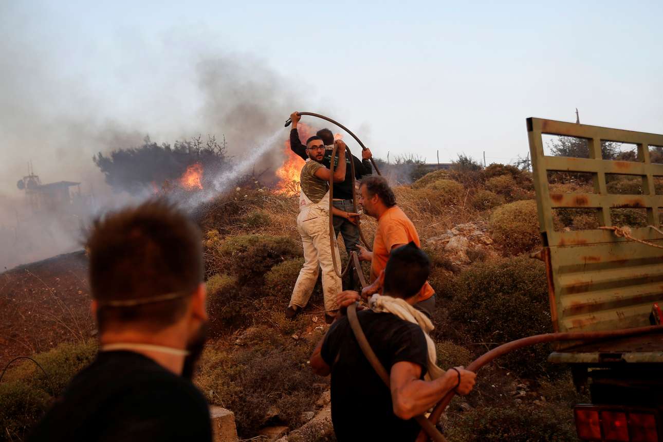 αναμετρώνται με την πύρινη λαίλαπα, με μια μάνικα, δυο τσουγκράνες,